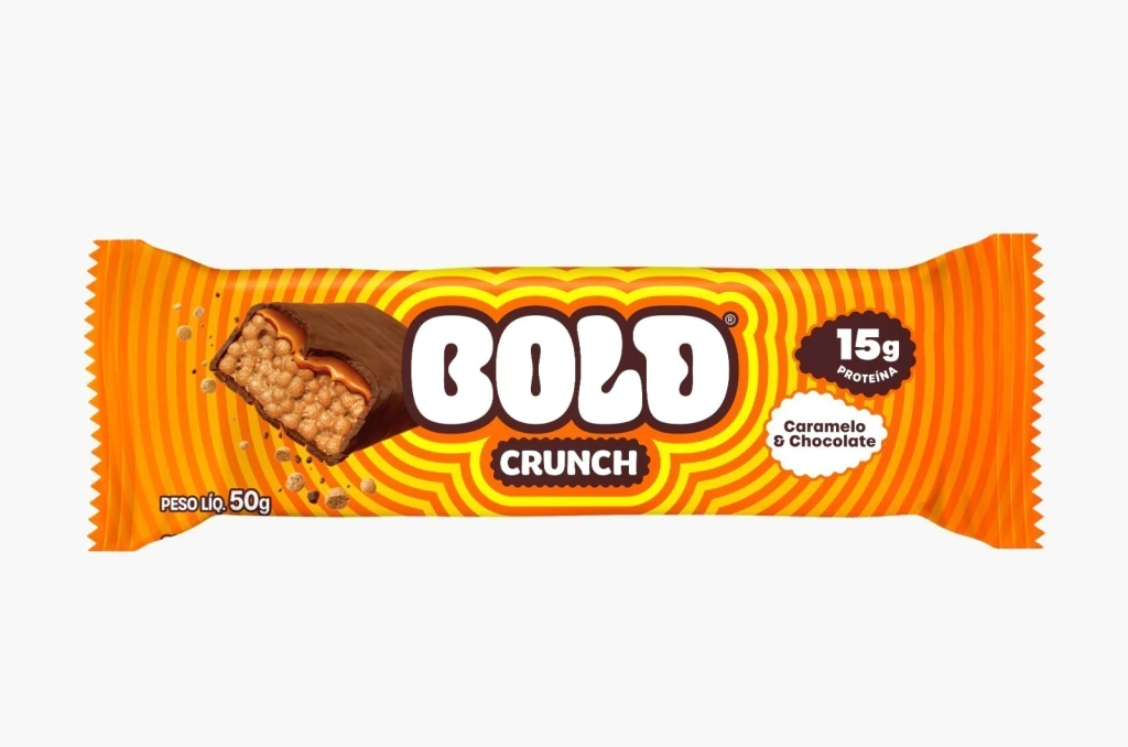 Consumir uma unidade (50g) da Barra Bold Crunch Caramelo e Chocolate a qualquer hora do dia, especialmente após o treino ou entre as refeições, conforme sua necessidade proteica e orientação de um profissional de saúde ou nutricionista.