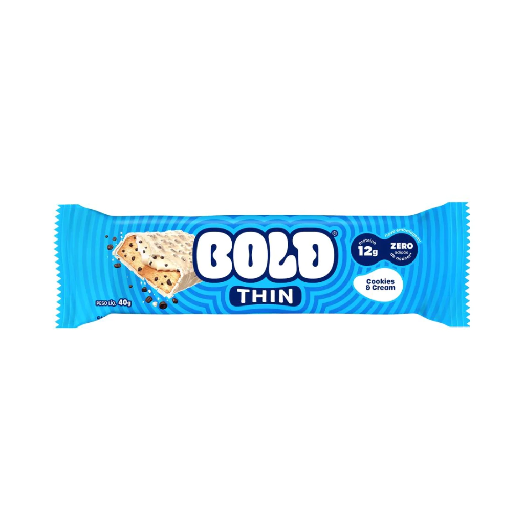 Por porção de 40g, a Barra de Proteínas Sabor Cookies and Cream Bold® Versão Thin 40g possui: