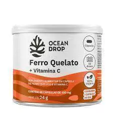 O Ferro Quelato com Vitamina C Ocean Drop 60 cápsulas é um suplemento alimentar desenvolvido para fornecer uma dose eficaz de ferro de fácil absorção (ferro quelato), combinado com vitamina C para potencializar sua absorção no organismo. O ferro é essencial para a produção de hemoglobina, transporte de oxigênio e prevenção de anemias, enquanto a vitamina C atua como antioxidante e melhora a biodisponibilidade do mineral.